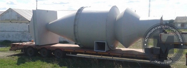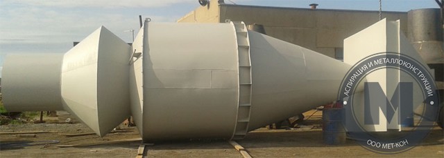 Циклон изготовлен из нержавеющего черного металла, швы проварены сплошным способом. Патрубки оснащены фланцами для подсоединения воздуховодов. Оптимальная скорость воздушного потока на входном патрубке составляет от 14 до 18 м/с. Вентилятор может устанавливаться как перед циклоном, так и после него.